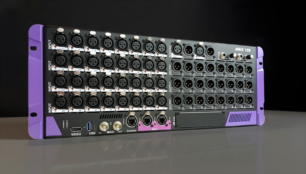 With 128 channels of powerful signal routing, DSP processing, and seamless control integration, the DMIX 128 delivers uncompromising audio performance for studios, live venues, broadcast facilities, and corporate environments.